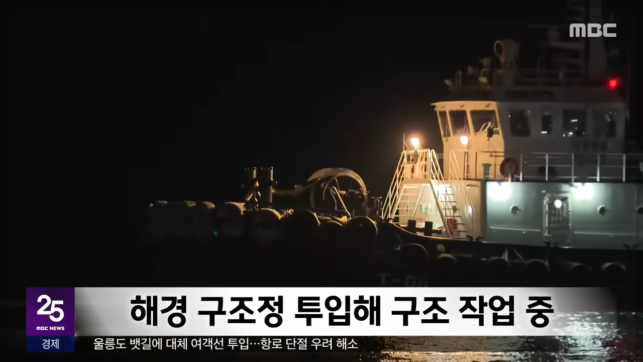 저녁 시간, 제주에서 목포로 돌아가던 배 한 척이 암초와 충돌했습니다.