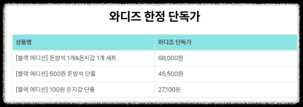 와디즈 펀딩은 12월 12일까지 진행되며 돈방석 45,500원, 돈지갑 27,100원, 세트 68,000원(11% 할인)입니다. 펀딩 종료 후엔 조폐공사 쇼핑몰에서 정가 판매되므로 지금이 최저가 구매 기회입니다. 재테크 관심자나 의미 있는 선물용으로 추천합니다.