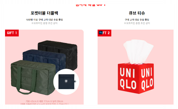 - 전 구매 고객: 유니클로 큐브 티슈 (선착순)