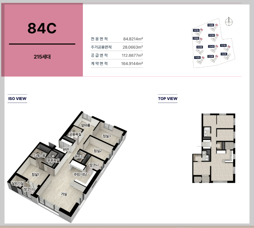 전 세대가 선호도 높은 전용면적 84㎡(A, B, C타입) 단일 평형으로 구성되어 있습니다.