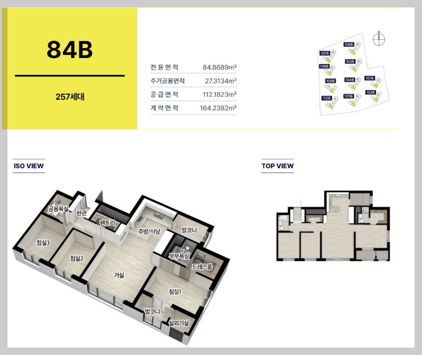 - 전 세대 84㎡ 단일 선호 평형 공급