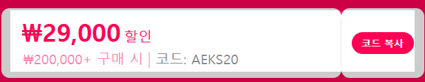 AEKS20 : 20만원 이상 구매 시 → 29,000원 할인