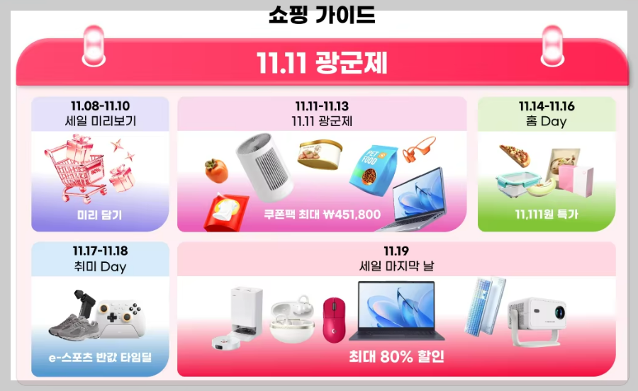 본 행사: 11월 11일(00시) ~ 11월 19일(23:59)